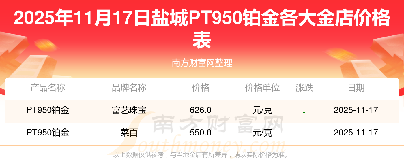 PT950铂金首饰最新价格一般是多少?不同的珠宝店是不是价格都一样的?(附2025年11月17日盐城各金店PT950铂金价格)
