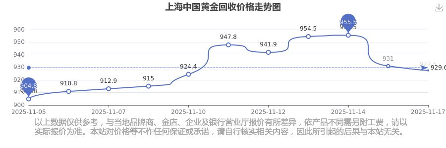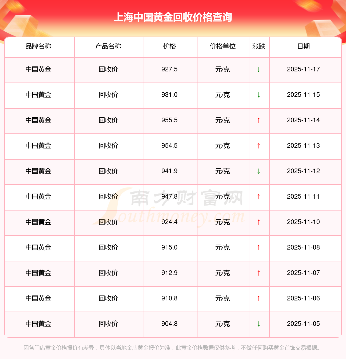 今日上海中国黄金回收价最新价格是927.5元/克。