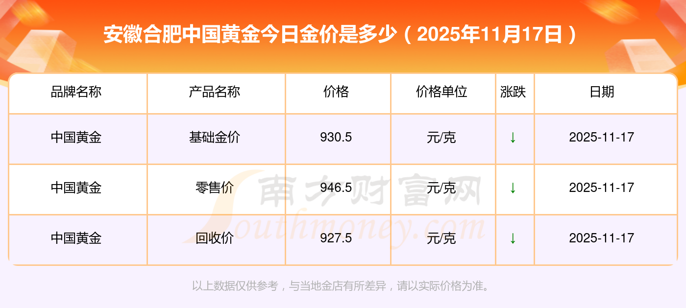 安徽合肥中国黄金金价今日价格最新_安徽合肥中国黄金黄金多少钱一克2025年11月17日,随小编来了解一下详情。