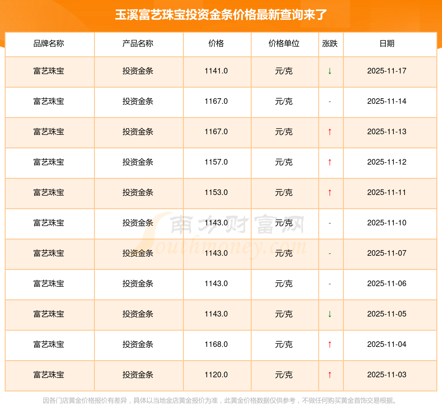 以上数据仅供参考,与当地金店有所差异,请以实际价格为准。