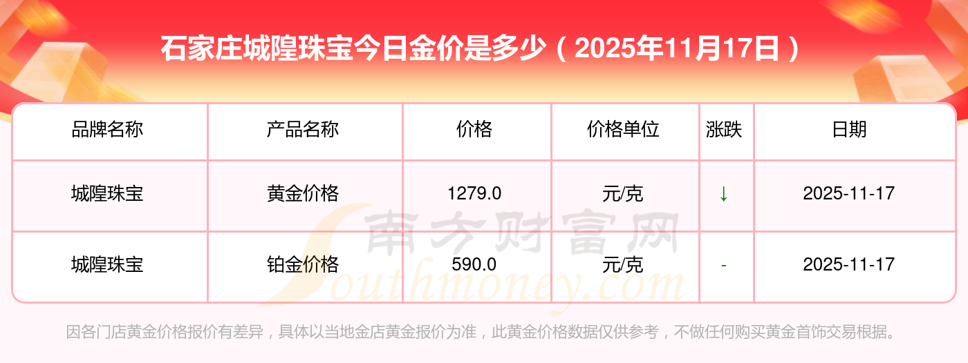 2025年11月17日黄金多少钱一克_今日石家庄城隍珠宝金价表一览