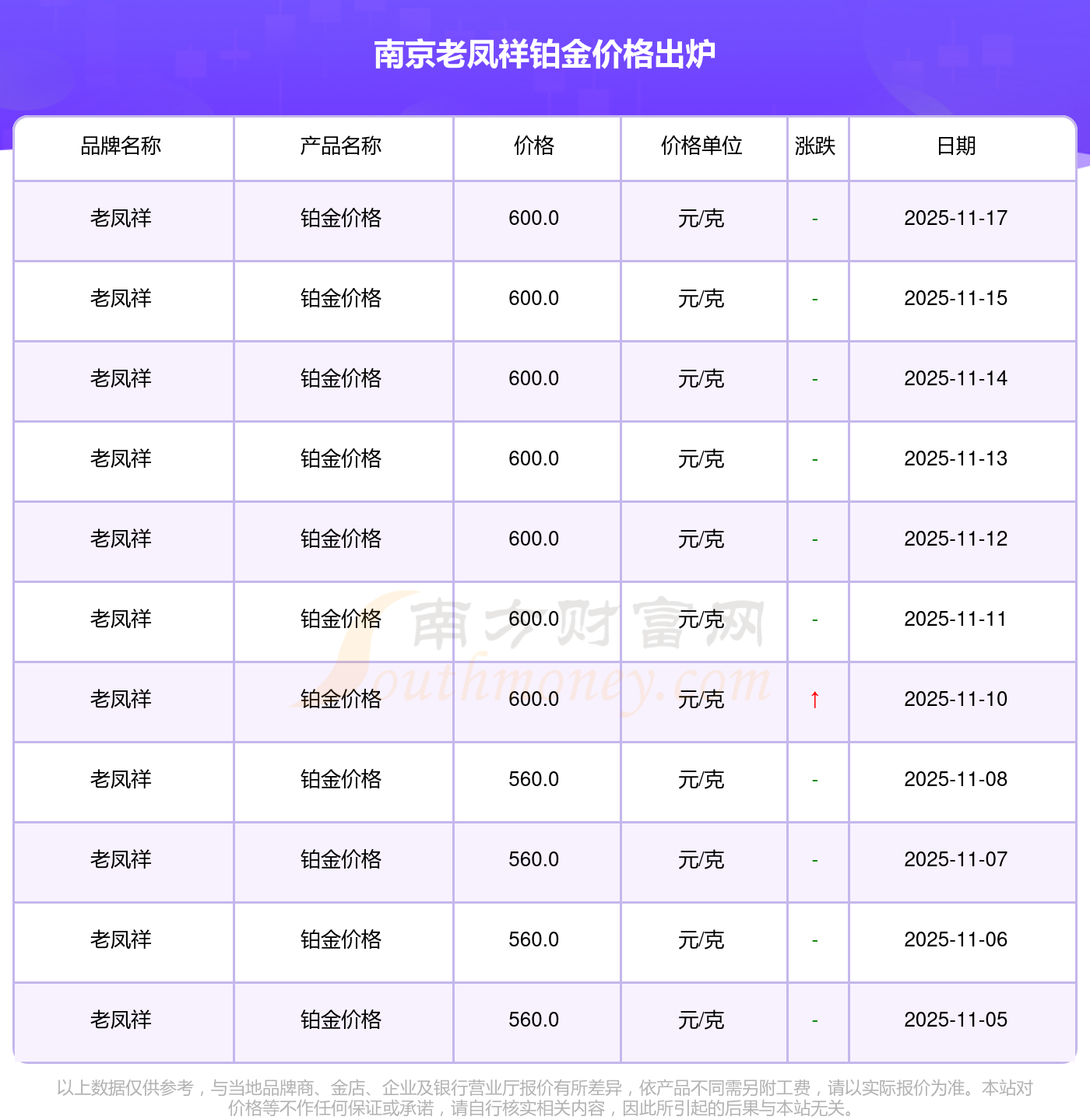 2025年11月17日谢瑞麟、谢瑞麟、谢瑞麟、谢瑞麟、金银街、金银街、金银街、金银街、金银街、金银街、多边金都珠宝等各大金店品牌铂金价格最新价格如下:谢瑞麟金饰价格(内地)1305.0元/克,谢瑞麟黄金饰品(香港)46270.0,谢瑞麟铂金饰品(香港)13490.0,谢瑞麟金条金价(香港)41990.0,金银街投资金条1280.0元/克,金银街工艺金条1295.0元/克,金银街千足金首饰1285.0元/克,金银街投资银条11.5元/克,金银街黄金回购921.0元/克,金银街白银回购10.7元/克,多边金都珠宝千足金饰品1256.0元/克。