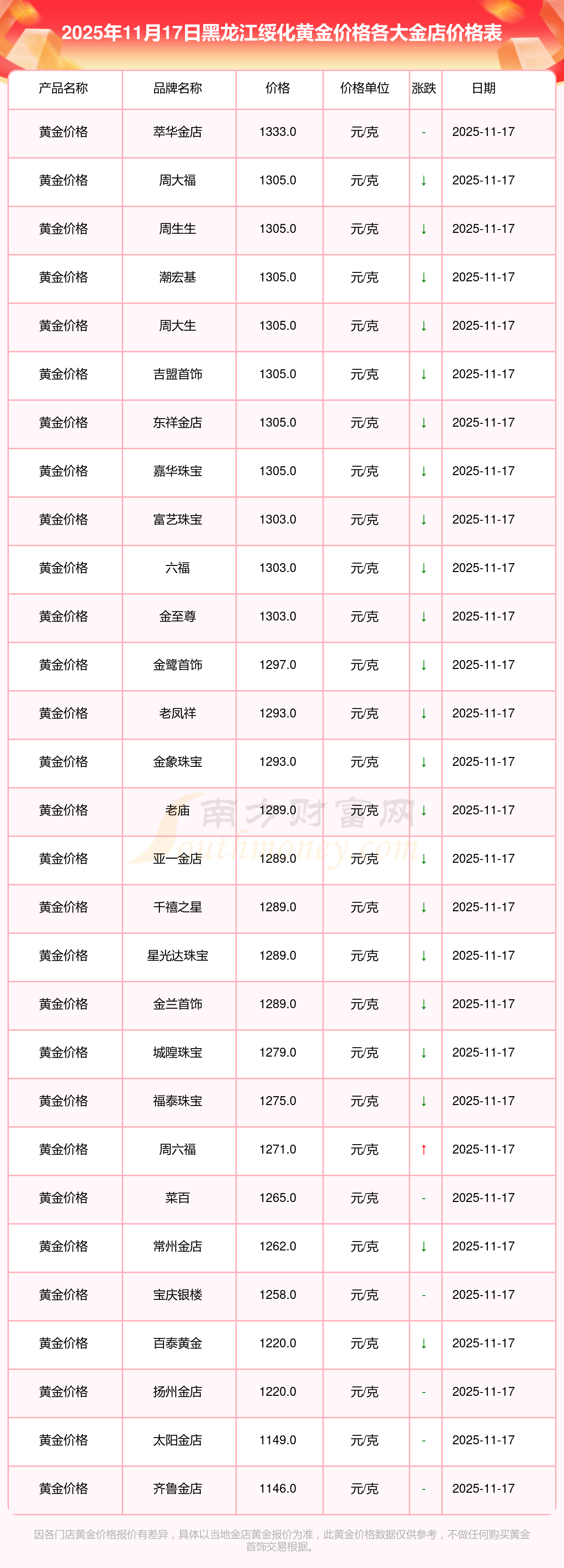一、 黑龙江绥化各金店黄金价格多少钱1克?黑龙江绥化各金店黄金价格最新详情