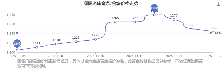 2025年11月17日,濮阳老庙所售金条/金块价格,其价格设定为 1245.0元/克。