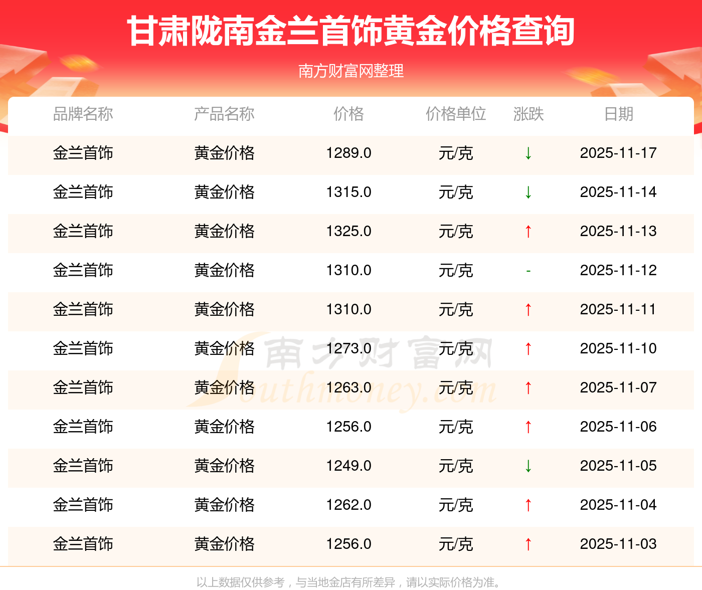 每克黄金在市面上的价格是怎样的,黄金价格汇总表,今日甘肃陇南金兰首饰黄金价格图表