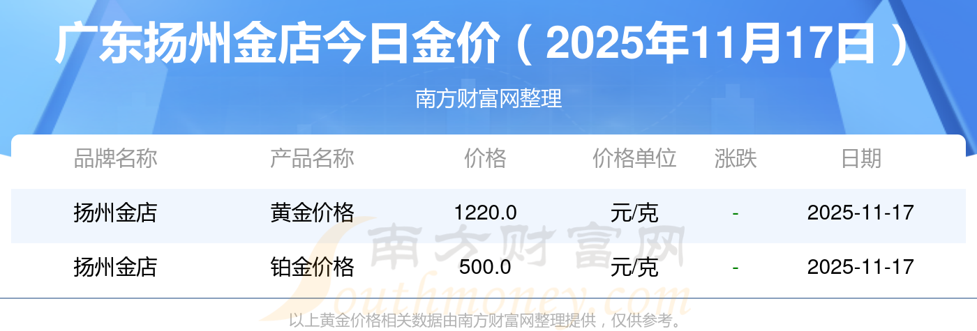 2025年11月17日扬州金店金条多少钱1克 现在广东扬州金店黄金价格查询