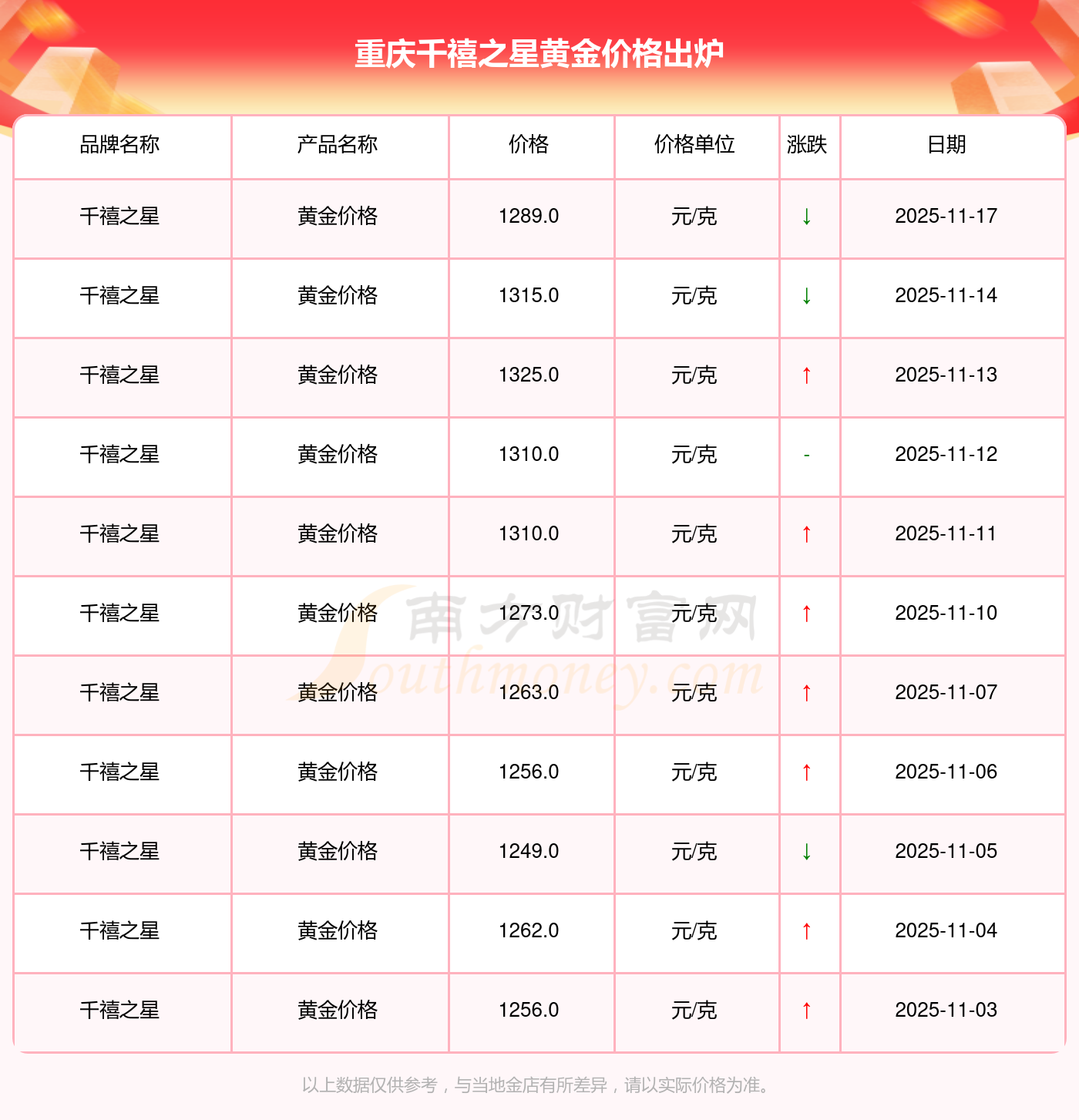 今日重庆千禧之星黄金价格公布今日每克黄金在零售市场的价格是多少今日重庆千禧之星黄金价格最新为:1289.0元/克。