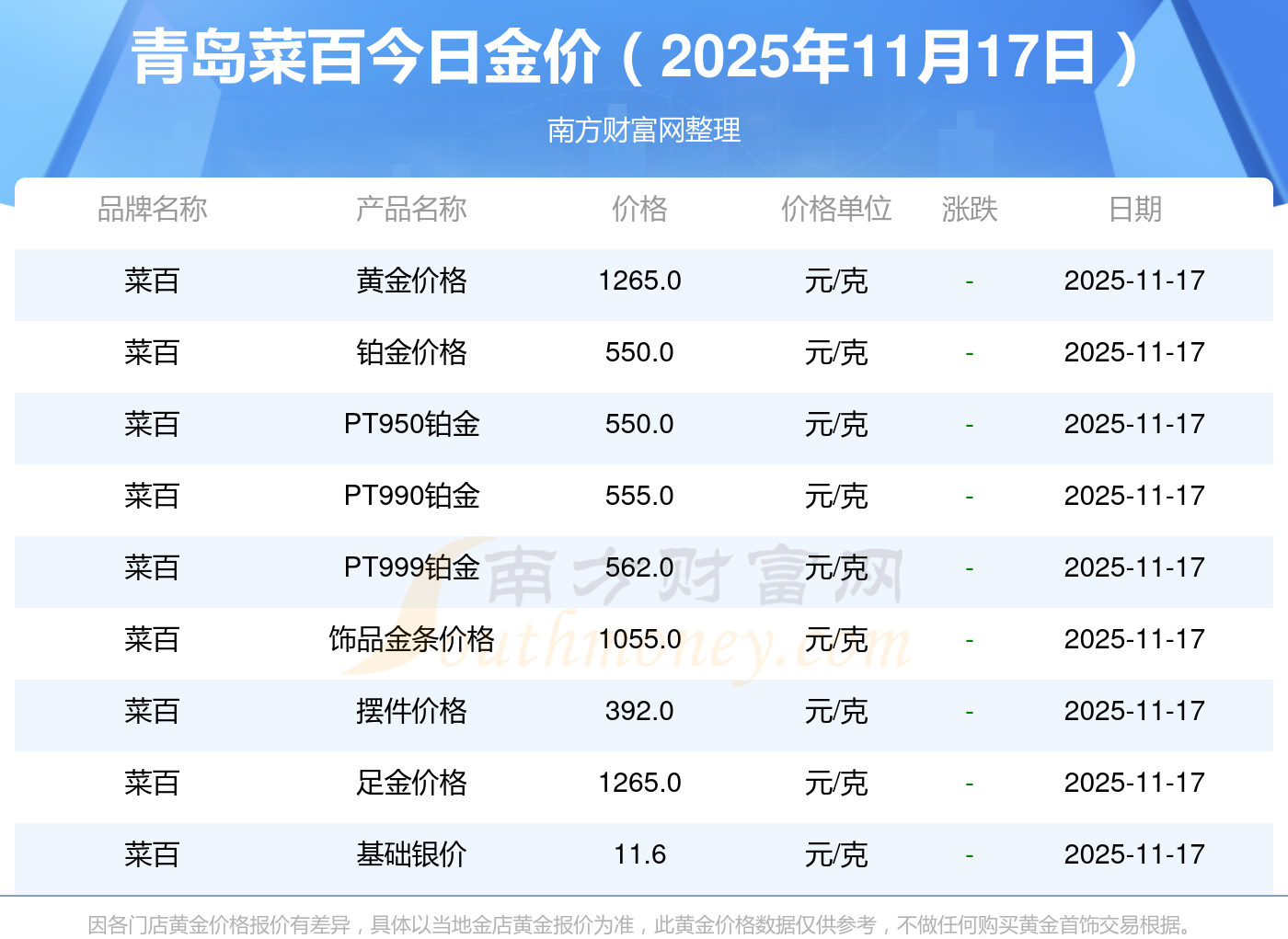 青岛菜百每克黄金的价格是多少?