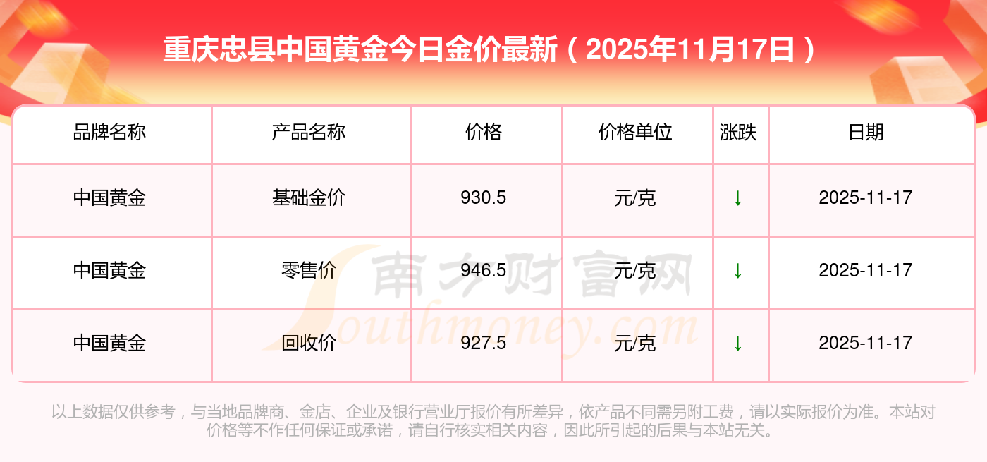 重庆忠县中国黄金金价按克算,价格是多少?