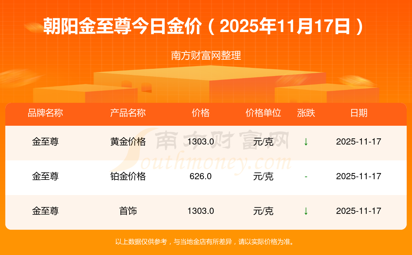 今天黄金价格行情怎样?此刻每克黄金售价多少?朝阳金至尊,现在一克黄金定价多少?金饰价格(内地)1305.0元/克,黄金饰品(香港)46270.0,铂金饰品(香港)13490.0,金条金价(香港)41990.0,投资金条1280.0元/克,工艺金条1295.0元/克,千足金首饰1285.0元/克,投资银条11.5元/克,黄金回购921.0元/克,白银回购10.7元/克,千足金饰品1256.0元/克。