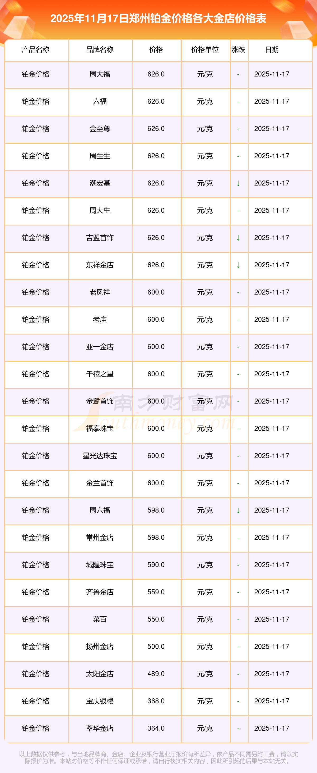 一、 郑州各金店铂金价格多少钱1克?郑州各金店铂金价格最新详情