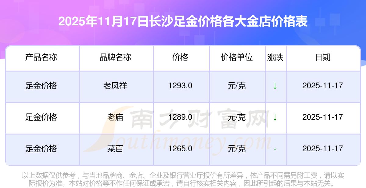 一、长沙各金店足金价格表来了