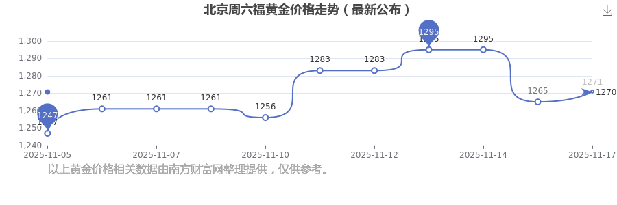 于 2025年11月17日,北京周六福黄金价格的克价为1271.0元/克。