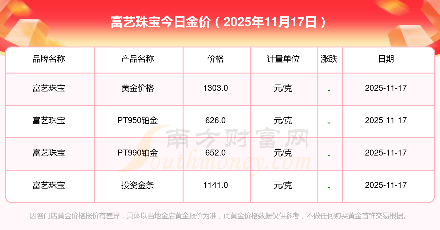 2025年11月17日谢瑞麟、谢瑞麟、谢瑞麟、谢瑞麟、金银街、金银街、金银街、金银街、金银街、金银街、多边金都珠宝等各大金店品牌PT990铂金最新价格如下:谢瑞麟金饰价格(内地)1305.0元/克,谢瑞麟黄金饰品(香港)46270.0,谢瑞麟铂金饰品(香港)13490.0,谢瑞麟金条金价(香港)41990.0,金银街投资金条1280.0元/克,金银街工艺金条1295.0元/克,金银街千足金首饰1285.0元/克,金银街投资银条11.5元/克,金银街黄金回购921.0元/克,金银街白银回购10.7元/克,多边金都珠宝千足金饰品1256.0元/克。