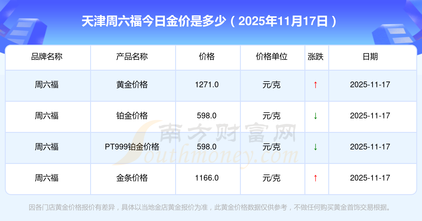 天津最新周六福今日金价多少钱一克?(2025年11月17日)