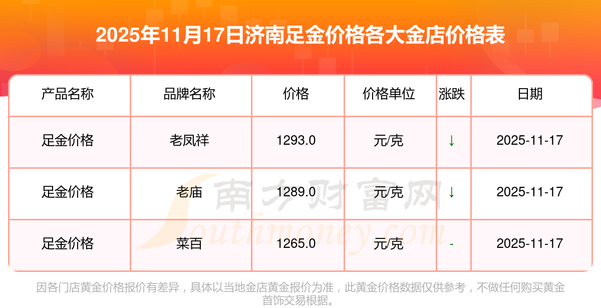 2025年11月17日济南谢瑞麟、谢瑞麟、谢瑞麟、谢瑞麟、金银街、金银街、金银街、金银街、金银街、金银街、多边金都珠宝等各大金店品牌足金价格最新价格如下:谢瑞麟金饰价格(内地)1305.0元/克,谢瑞麟黄金饰品(香港)46270.0,谢瑞麟铂金饰品(香港)13490.0,谢瑞麟金条金价(香港)41990.0,金银街投资金条1280.0元/克,金银街工艺金条1295.0元/克,金银街千足金首饰1285.0元/克,金银街投资银条11.5元/克,金银街黄金回购921.0元/克,金银街白银回购10.7元/克,多边金都珠宝千足金饰品1256.0元/克。