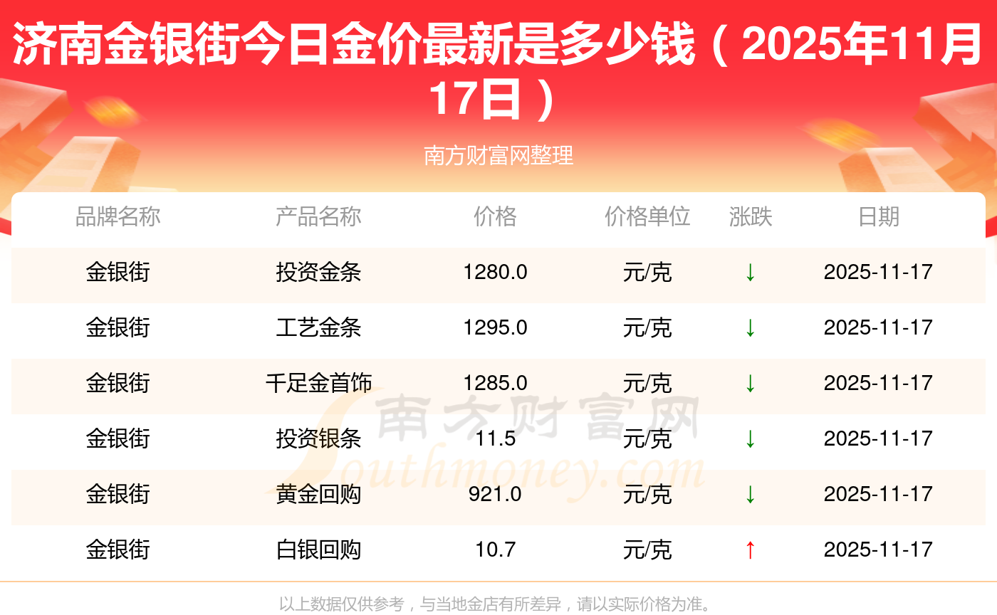 2025年11月17日金银街金条多少钱1克 现在济南金银街黄金价格查询