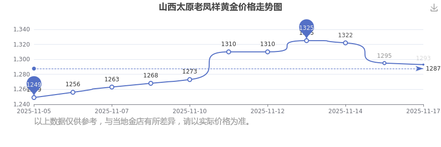 2025年11月17日,山西太原老凤祥所售黄金价格,其价格设定为 1293.0元/克。