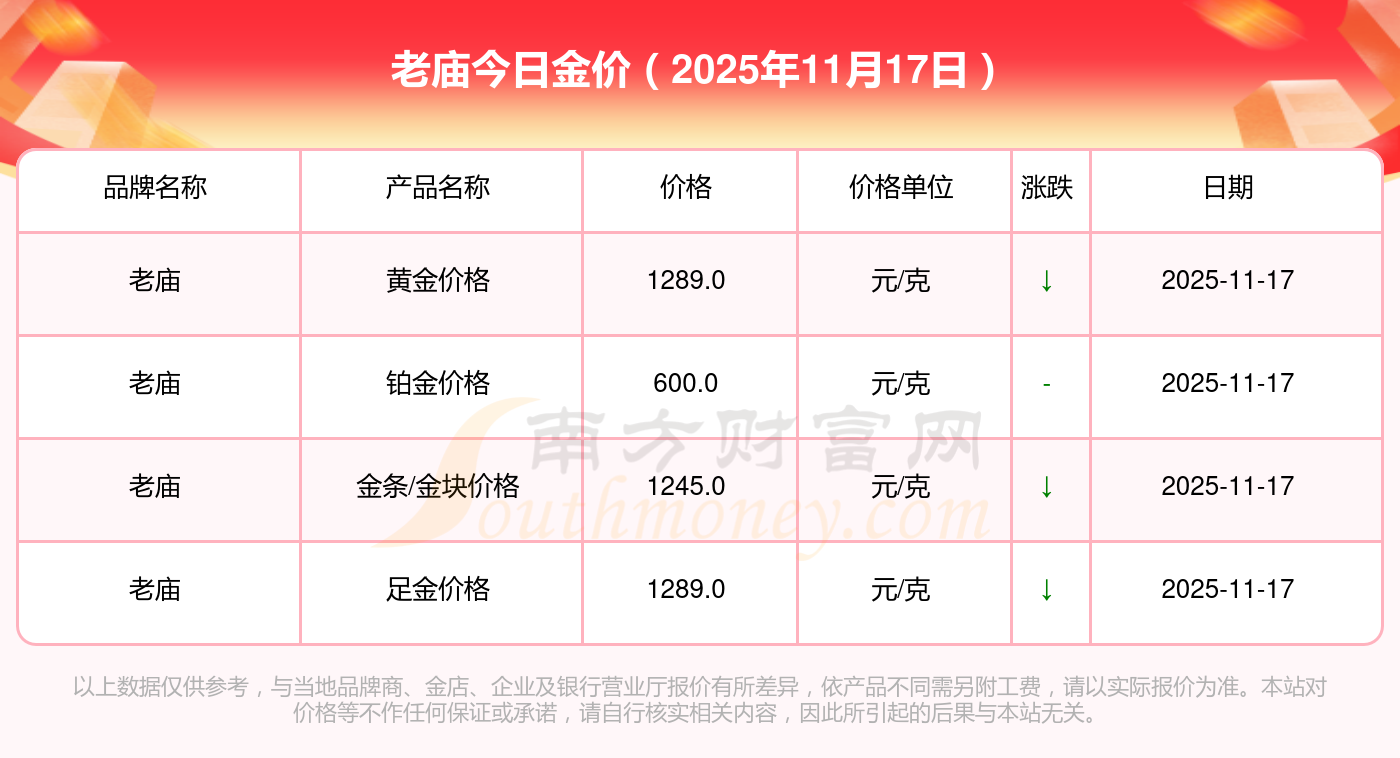 今天是2025年11月17日,谢瑞麟、谢瑞麟、谢瑞麟、谢瑞麟、金银街、金银街、金银街、金银街、金银街、金银街、多边金都珠宝等各大金店品牌黄金价格最新价格如下:谢瑞麟1305.0元/克、谢瑞麟46270.0、谢瑞麟13490.0、谢瑞麟41990.0、金银街1280.0元/克、金银街1295.0元/克、金银街1285.0元/克、金银街11.5元/克、金银街921.0元/克、金银街10.7元/克、多边金都珠宝1256.0元/克。
