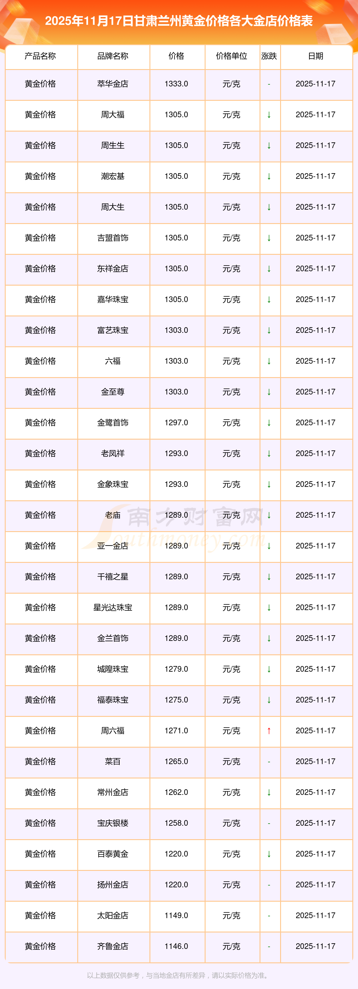 一、甘肃兰州各金店黄金价格表来了