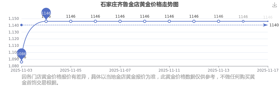 1146.0元/克的黄金价格,是石家庄齐鲁金店在 2025年11月17日给出的。
