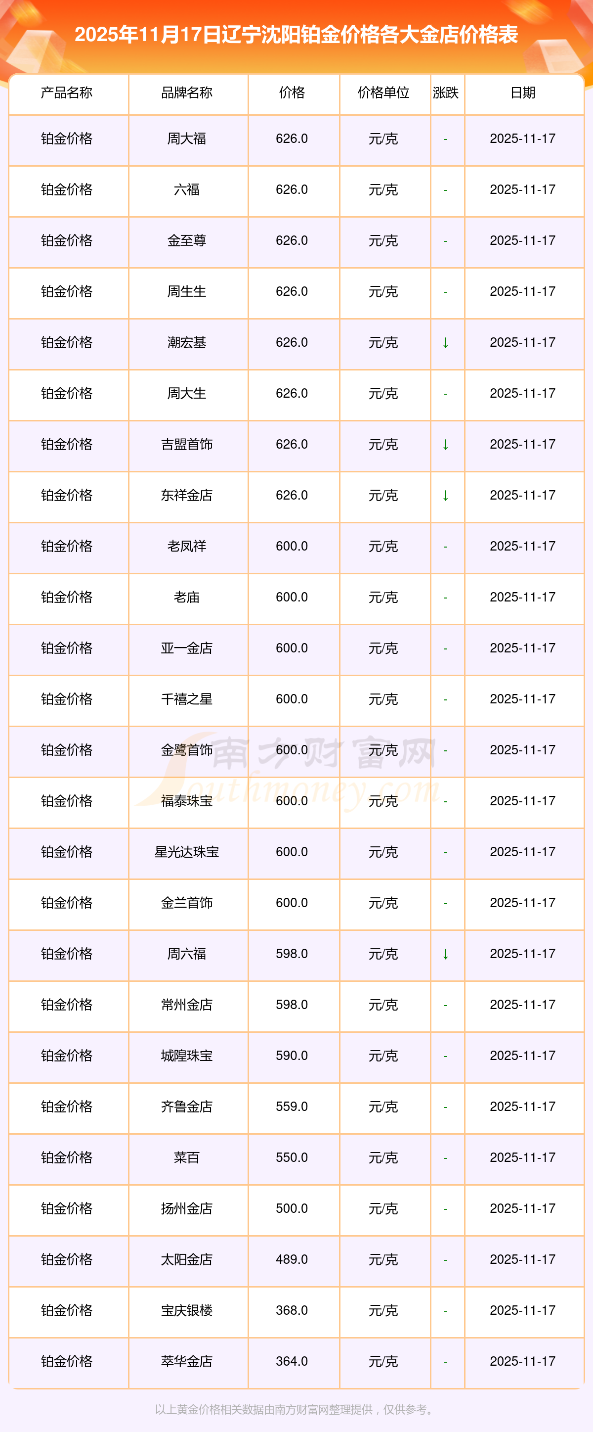 一、 辽宁沈阳各金店铂金价格多少钱1克?辽宁沈阳各金店铂金价格最新详情