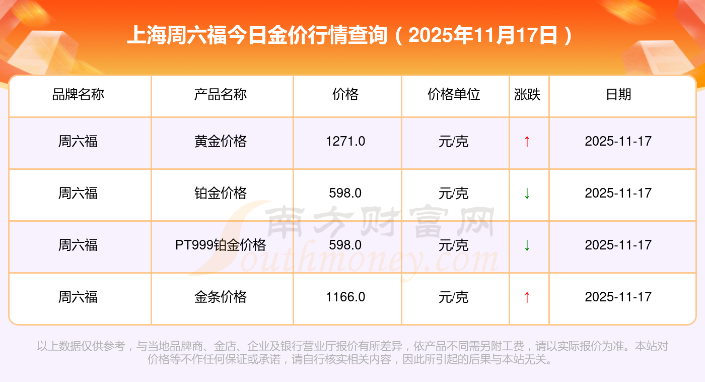 以上数据仅供参考,与当地金店有所差异,请以实际价格为准。