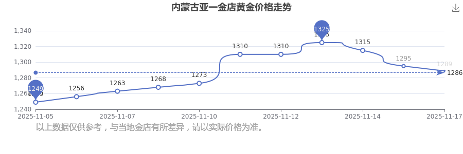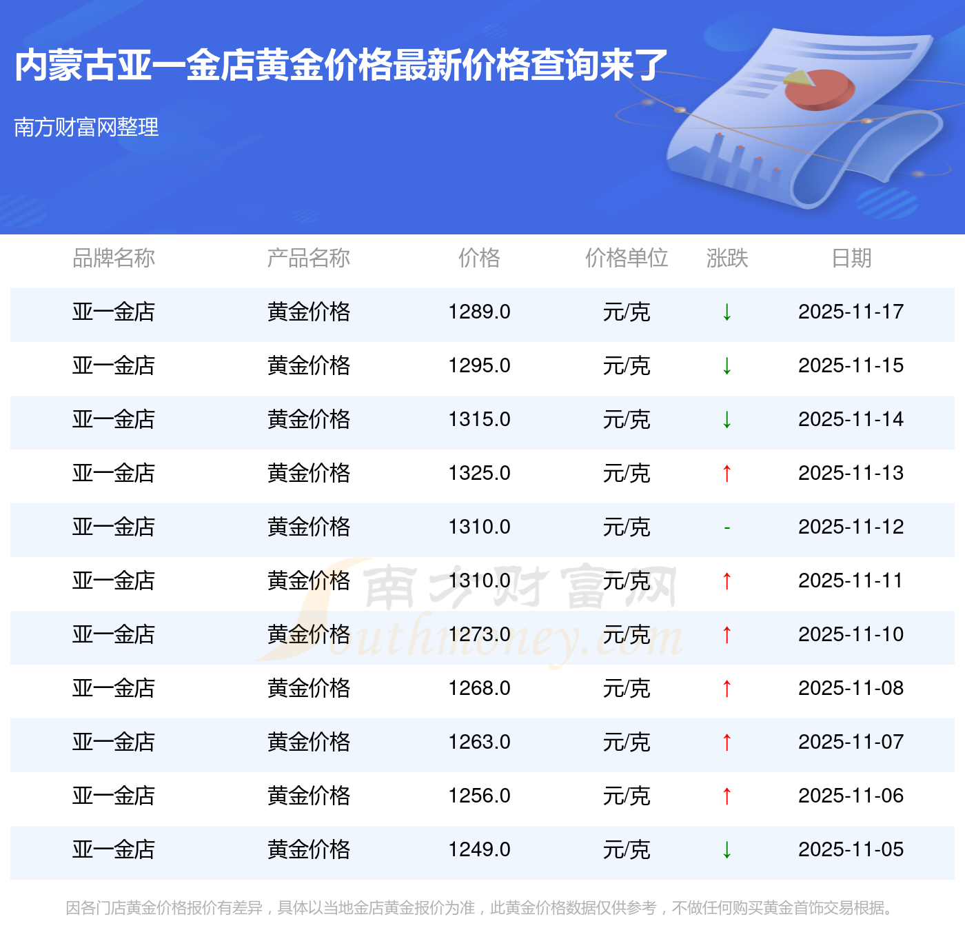 内蒙古亚一金店在 2025年11月17日,黄金价格的售卖价格是 1289.0元/克。