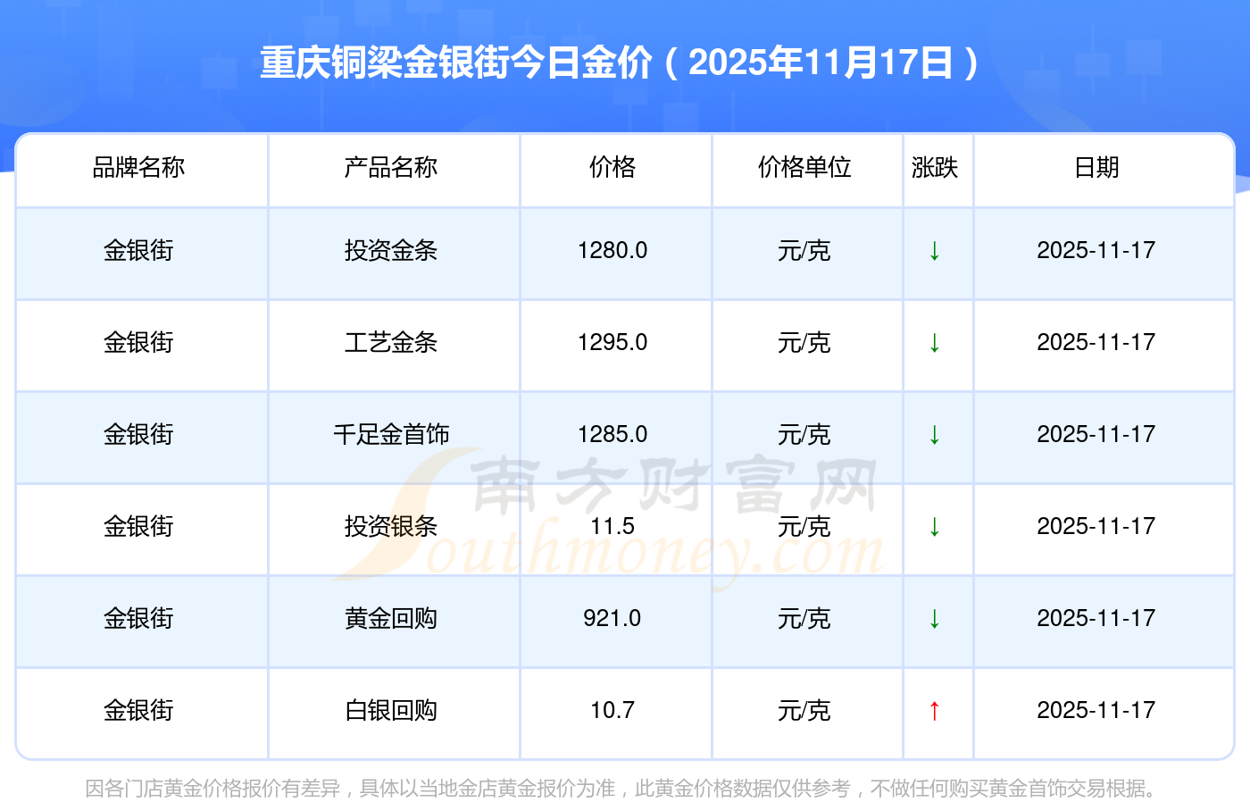 以上数据仅供参考,与当地品牌商、金店、企业及银行营业厅报价有所差异,依产品不同需另附工费,请以实际报价为准。本站对价格等不作任何保证或承诺,请自行核实相关内容,因此所引起的后果与本站无关。