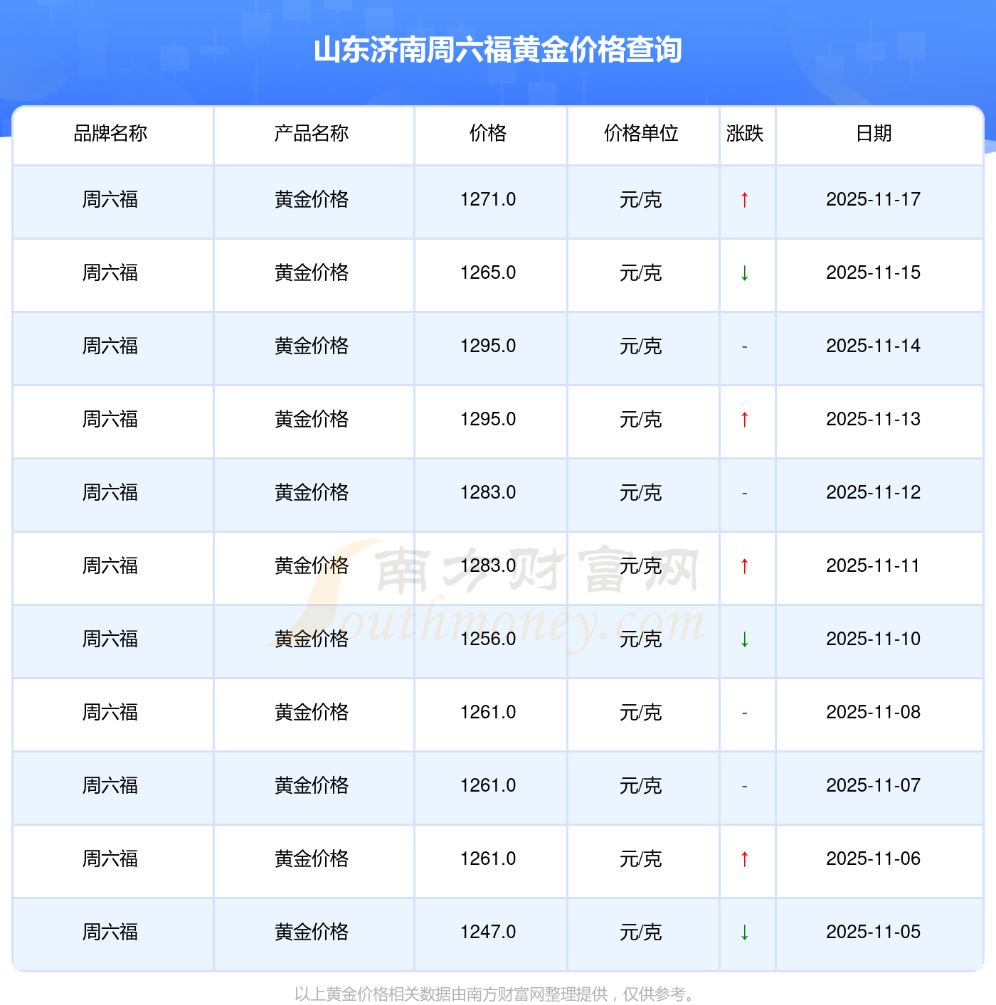 以上数据仅供参考,与当地金店有所差异,请以实际价格为准。