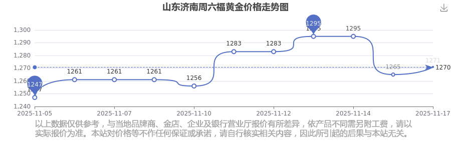今日山东济南周六福黄金价格:1271.0元/克。