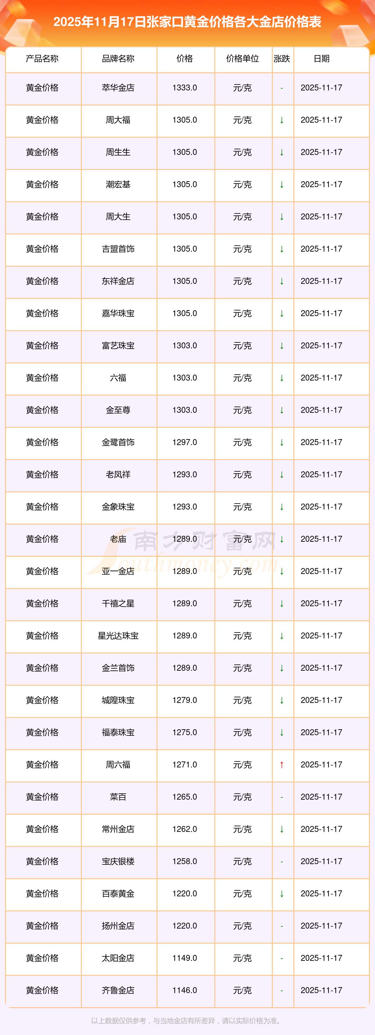 因各门店黄金价格报价有差异,具体以当地金店黄金报价为准,此黄金价格数据仅供参考,不做任何购买黄金首饰交易根据。
