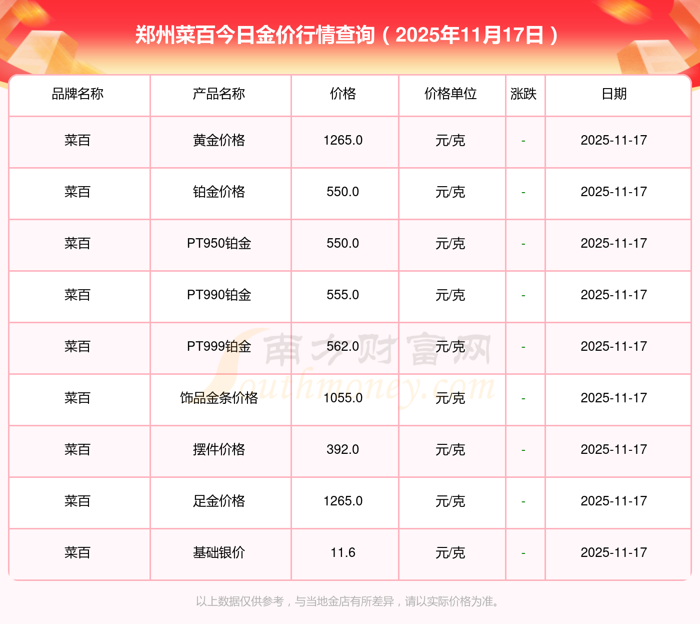 以上数据仅供参考,与当地金店有所差异,请以实际价格为准。