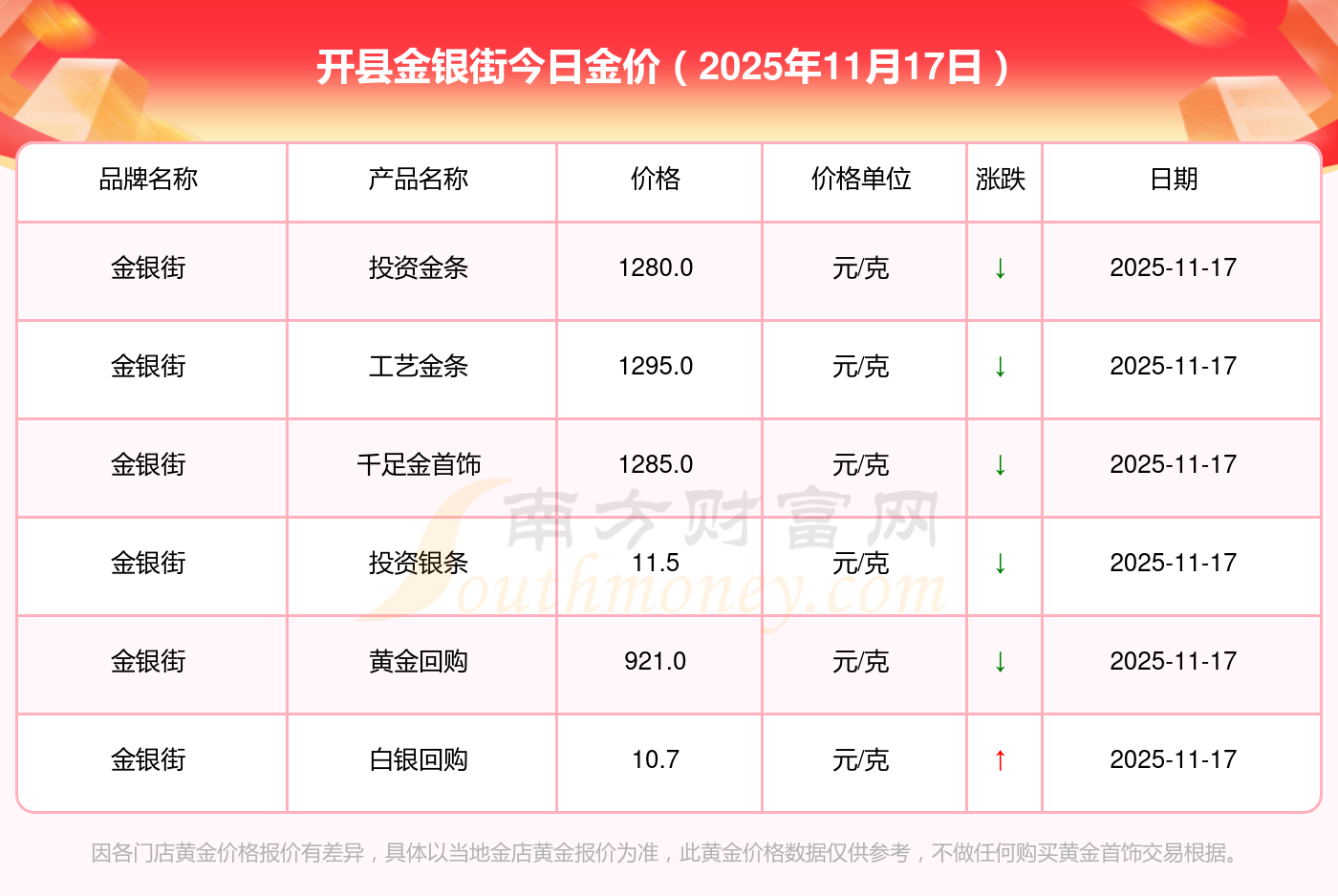 以上数据仅供参考,与当地金店有所差异,请以实际价格为准。