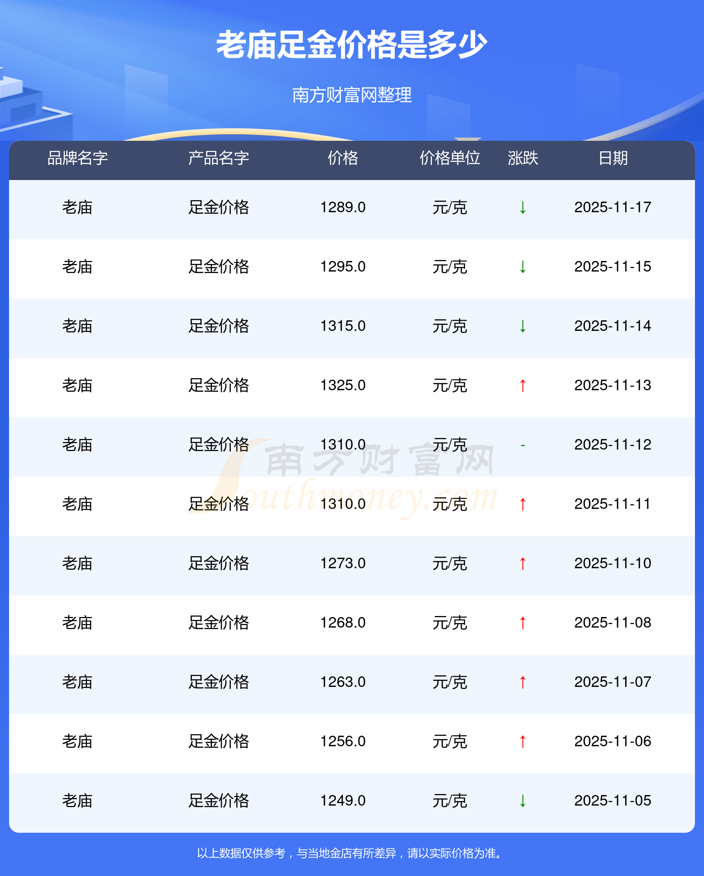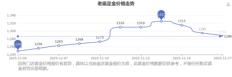 老庙今日足金价格的最新标价为1289.0元/克。