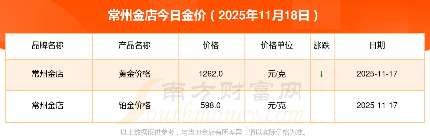 现在常州金店黄金价格是多少钱1克_2025年常州金店今日金价是多少钱一克,最新常州金店查询,2025年11月18日常州金店铂金价格现在每克多少钱?最新常州金店铂金价格报价公布,一起来看看吧!