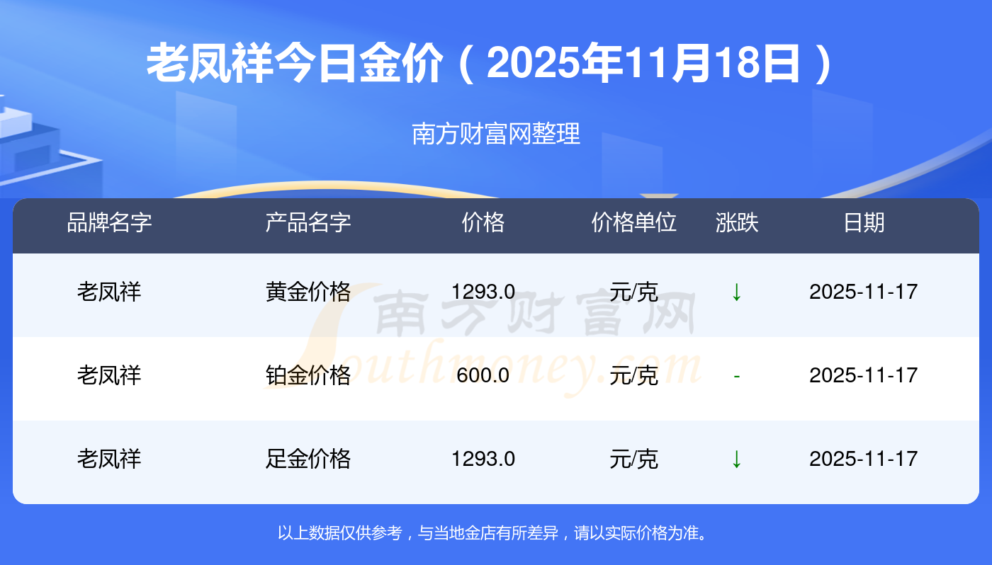以上数据仅供参考,与当地品牌商、金店、企业及银行营业厅报价有所差异,依产品不同需另附工费,请以实际报价为准。本站对价格等不作任何保证或承诺,请自行核实相关内容,因此所引起的后果与本站无关。