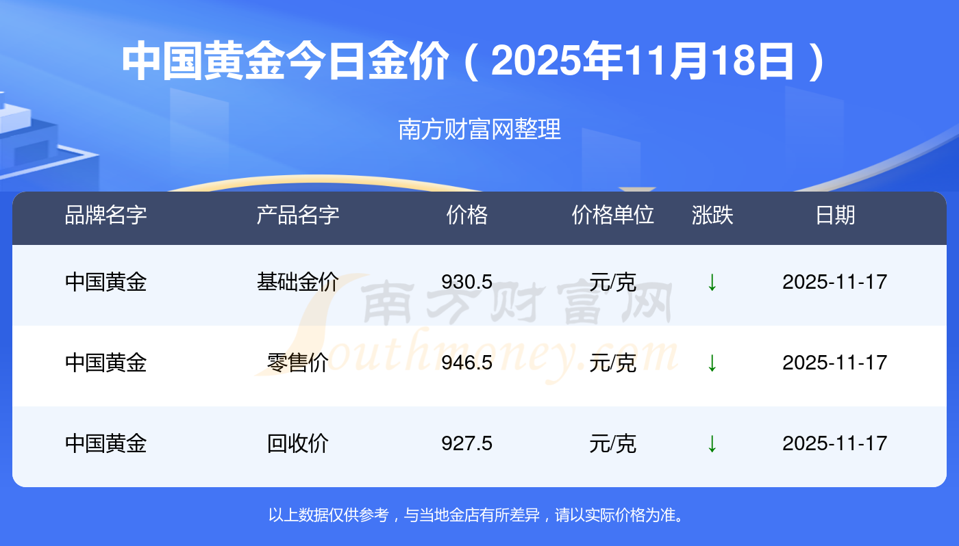 金饰价格(内地)1305.0元/克,黄金饰品(香港)46270.0,铂金饰品(香港)13490.0,金条金价(香港)41990.0,投资金条1280.0元/克,工艺金条1295.0元/克,千足金首饰1285.0元/克,投资银条11.5元/克,黄金回购921.0元/克,白银回购10.7元/克,千足金饰品1256.0元/克。