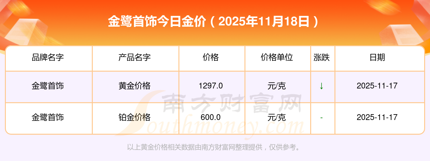 2025年11月18日谢瑞麟、谢瑞麟、谢瑞麟、谢瑞麟、金银街、金银街、金银街、金银街、金银街、金银街、多边金都珠宝等各大金店品牌黄金价格最新价格如下:谢瑞麟金饰价格(内地)1305.0元/克,谢瑞麟黄金饰品(香港)46270.0,谢瑞麟铂金饰品(香港)13490.0,谢瑞麟金条金价(香港)41990.0,金银街投资金条1280.0元/克,金银街工艺金条1295.0元/克,金银街千足金首饰1285.0元/克,金银街投资银条11.5元/克,金银街黄金回购921.0元/克,金银街白银回购10.7元/克,多边金都珠宝千足金饰品1256.0元/克。