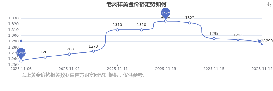 2025年11月18日老凤祥黄金价格为1285.0元/克。