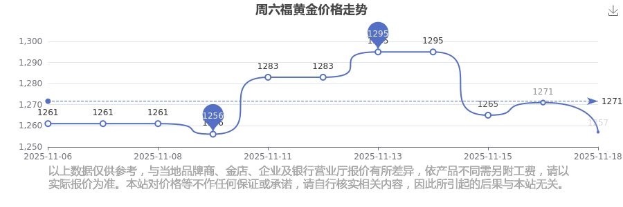 今日周六福黄金价格为1257.0元/克。