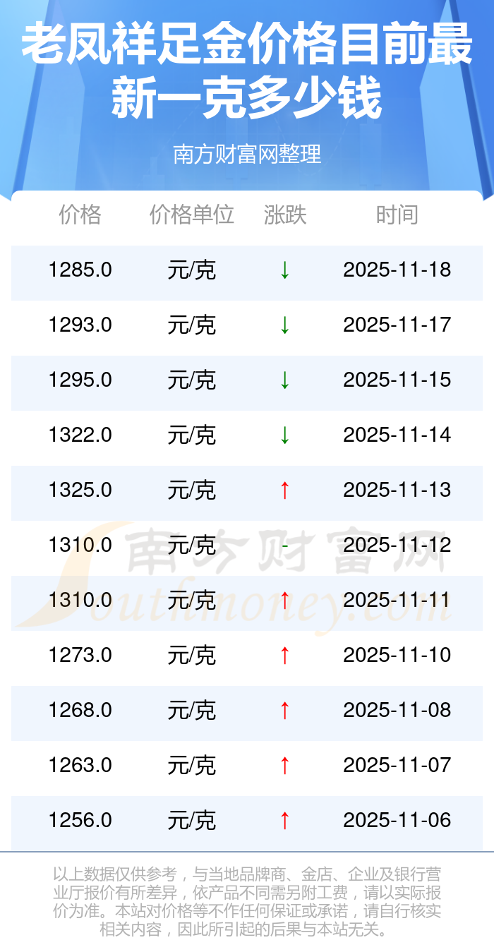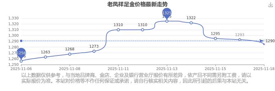 1285.0元/克成为老凤祥今日 足金价格的最新交易的价格。