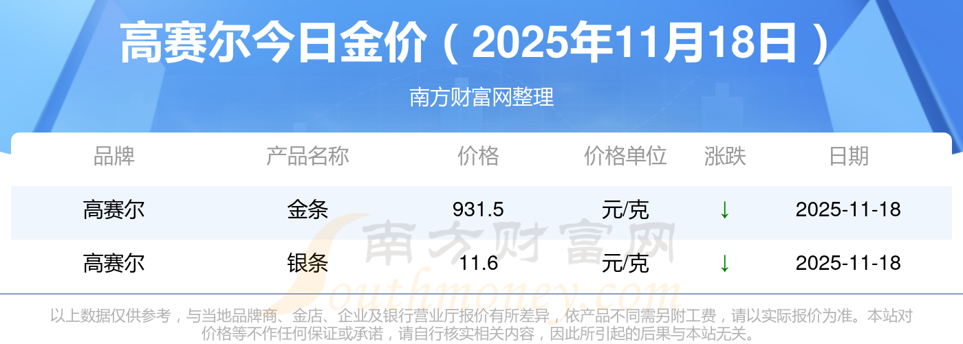 高赛尔黄金在今日的定价为多少?黄金价格1288.0元/克,铂金价格626.0元/克,饰品金价(内地)1288.0元/克,黄金饰品(香港)44770.0,铂金价格(香港)17820.0,金条价格(香港)40390.0,金条金价(内地)1127.0元/克,黄金价格1285.0元/克,铂金价格600.0元/克,足金价格1285.0元/克,黄金价格1257.0元/克。