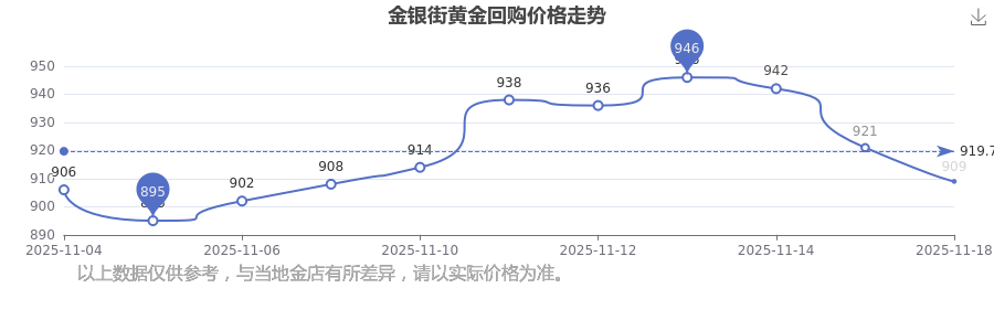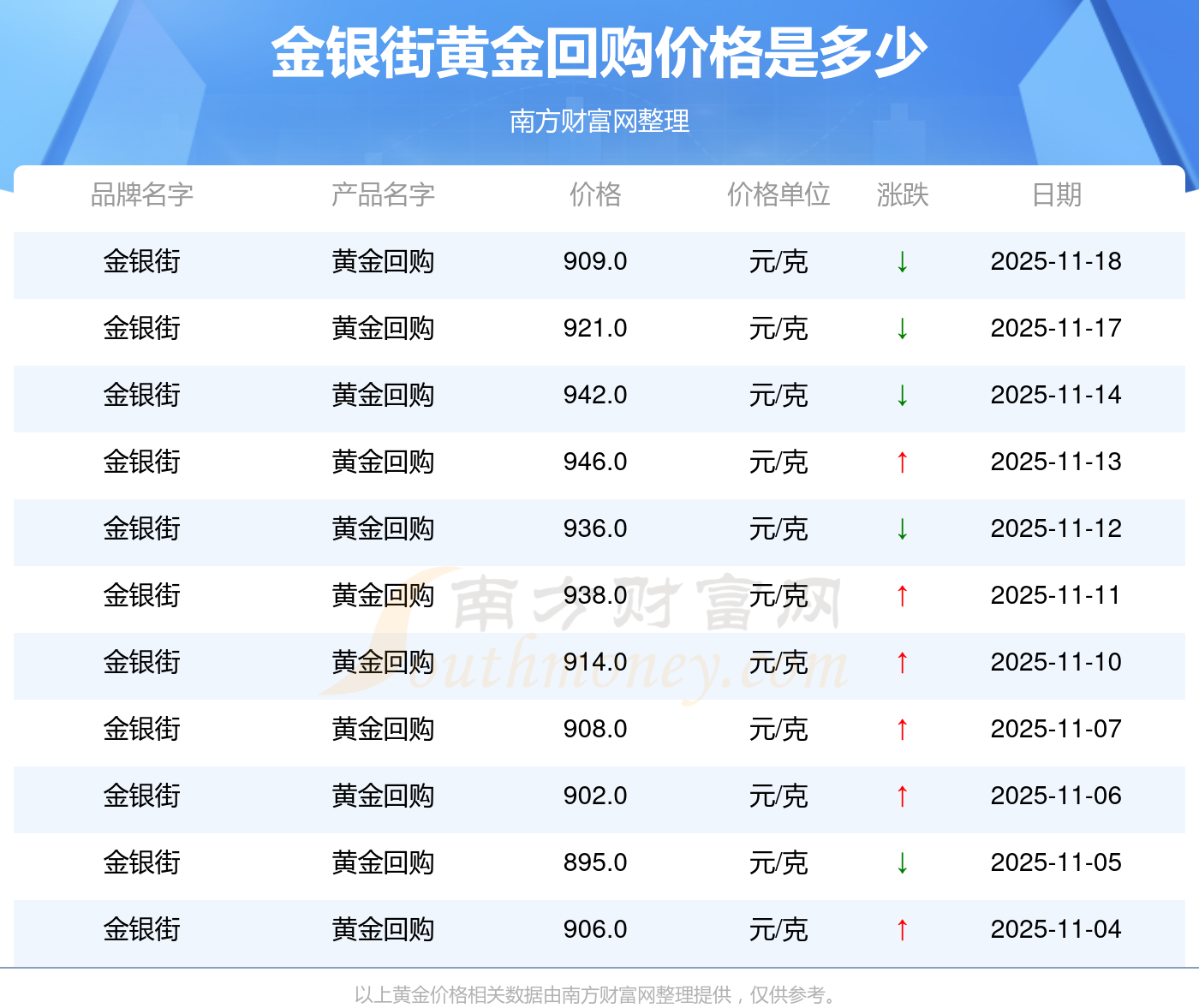 909.0元/克的价格,是金银街今日 黄金回购的最新行情。