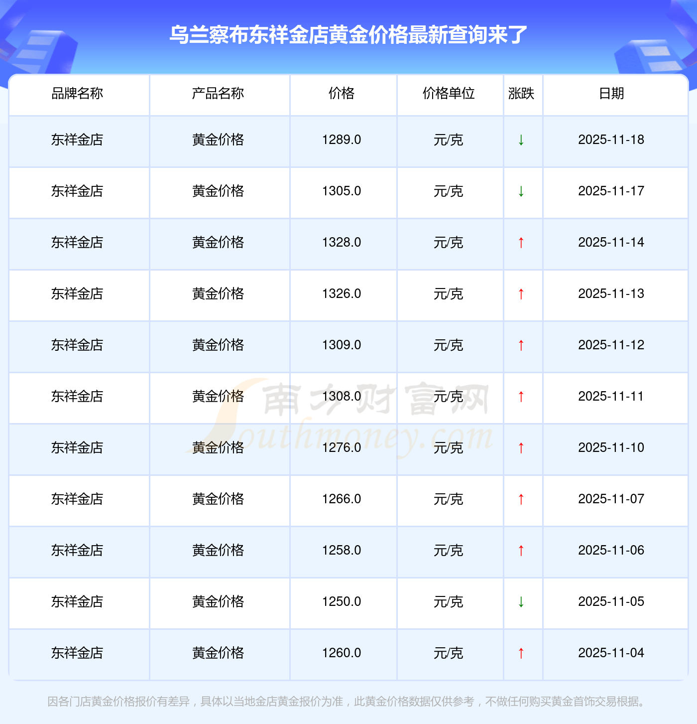 今日乌兰察布东祥金店黄金价格公布黄金一克的价格为几何乌兰察布东祥金店在 2025年11月18日的黄金价格零售价格为 1289.0元/克。