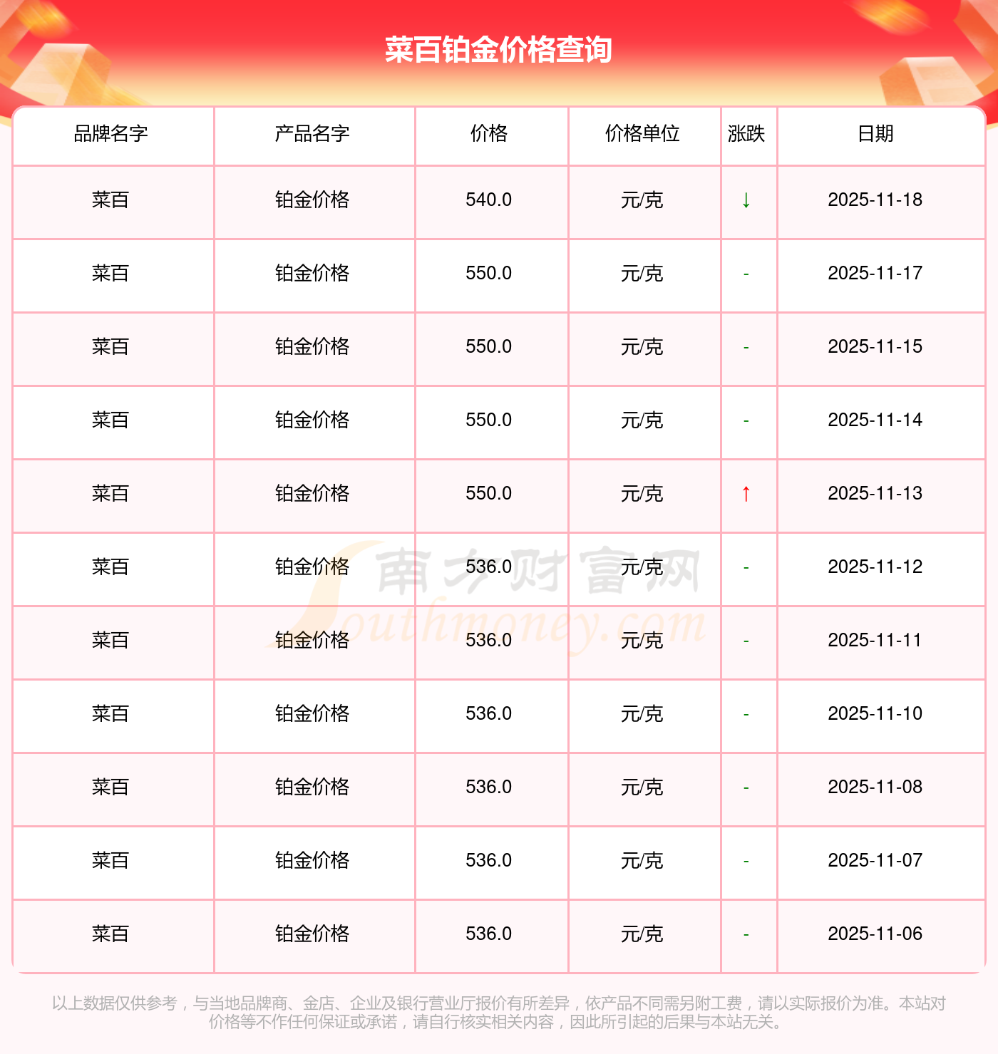 540.0元/克的价格,是菜百今日 铂金价格的最新行情。