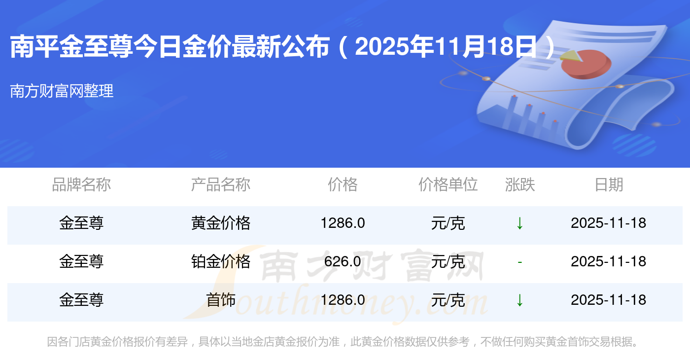 2025年11月18日南平金至尊金价查询:黄金价格1288.0元/克,铂金价格626.0元/克,饰品金价(内地)1288.0元/克,黄金饰品(香港)44770.0,铂金价格(香港)17820.0,金条价格(香港)40390.0,金条金价(内地)1127.0元/克,黄金价格1285.0元/克,铂金价格600.0元/克,足金价格1285.0元/克,黄金价格1257.0元/克。
