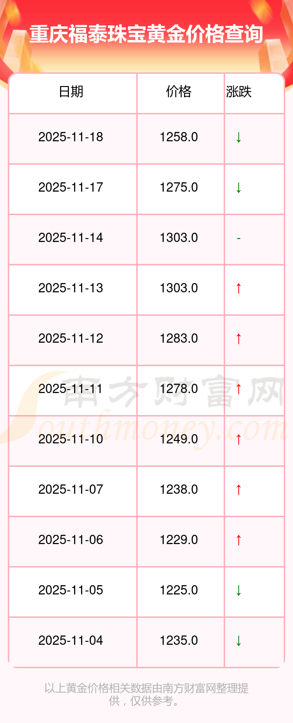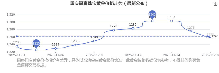 重庆福泰珠宝在 2025年11月18日,黄金价格的售卖价格是 1258.0元/克。