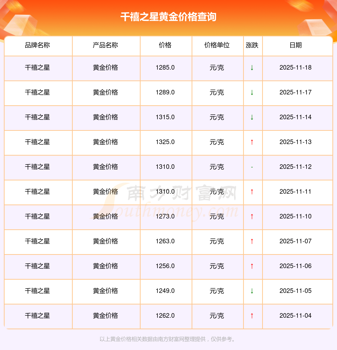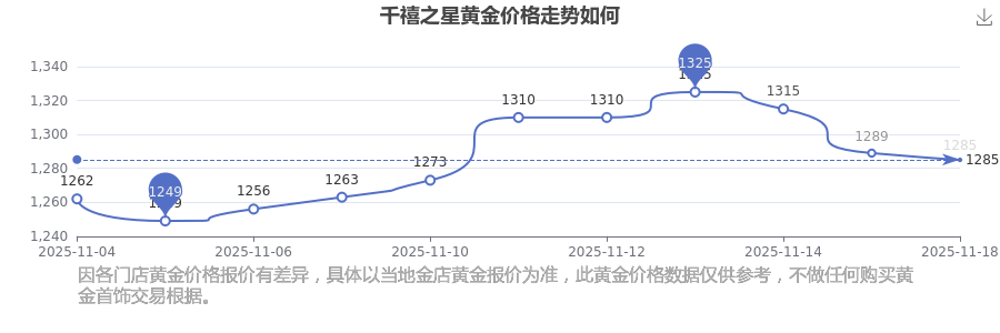 今日黄金价格查询_现在金价黄金一克多少钱,黄金价格是多少钱一克?平常来说一克黄金的价格大概是多少?据了解,今日千禧之星 黄金价格的最新价格为1285.0元/克。