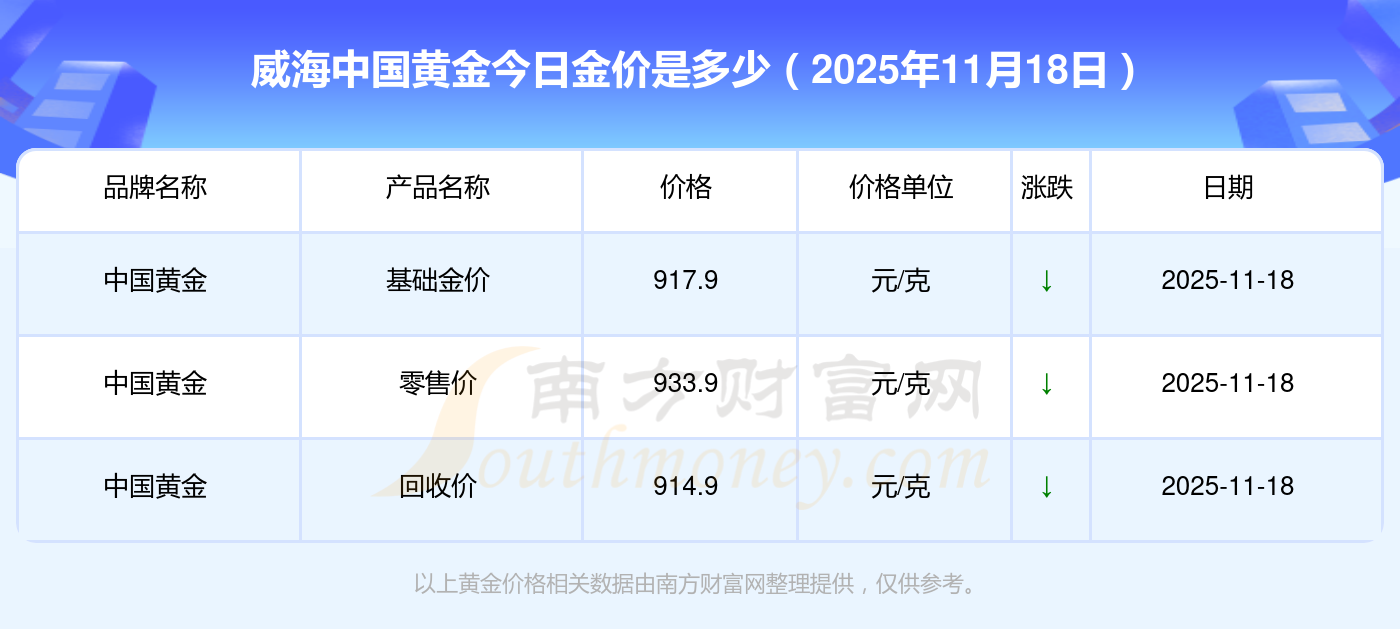 2025年11月18日威海中国黄金今天黄金价格多少一克_今日金价表来了